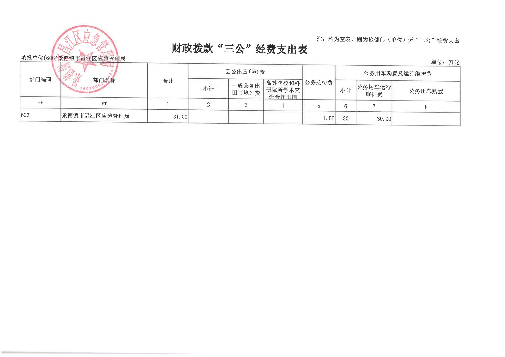 昌江区应急局2025年一般公共预算财政拨款“三公”经费支出表