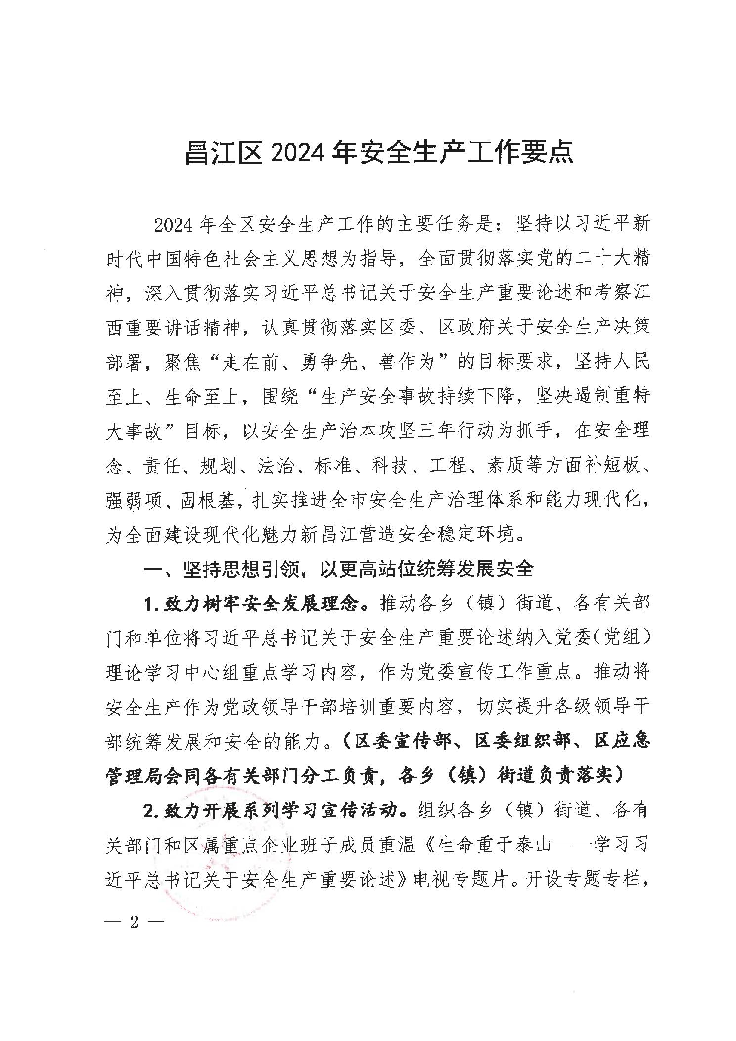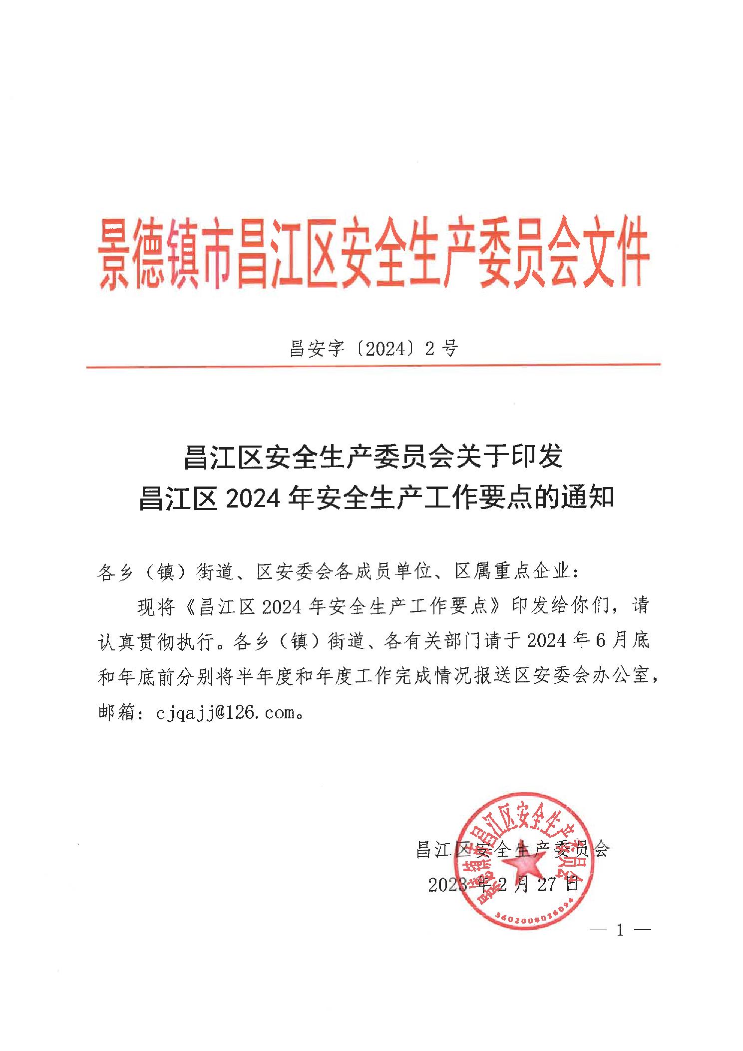 关于印发昌江区2024年安全生产工作要点的通知
