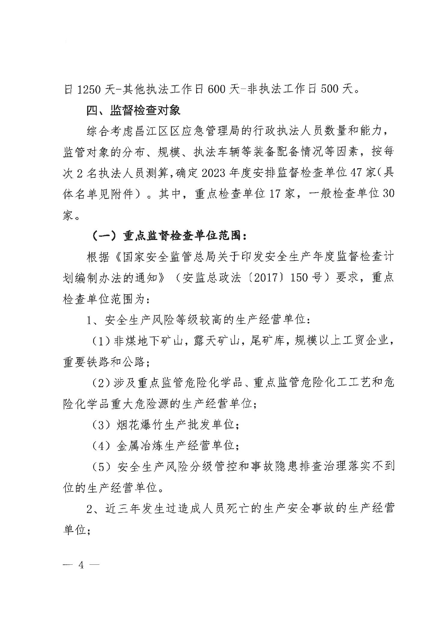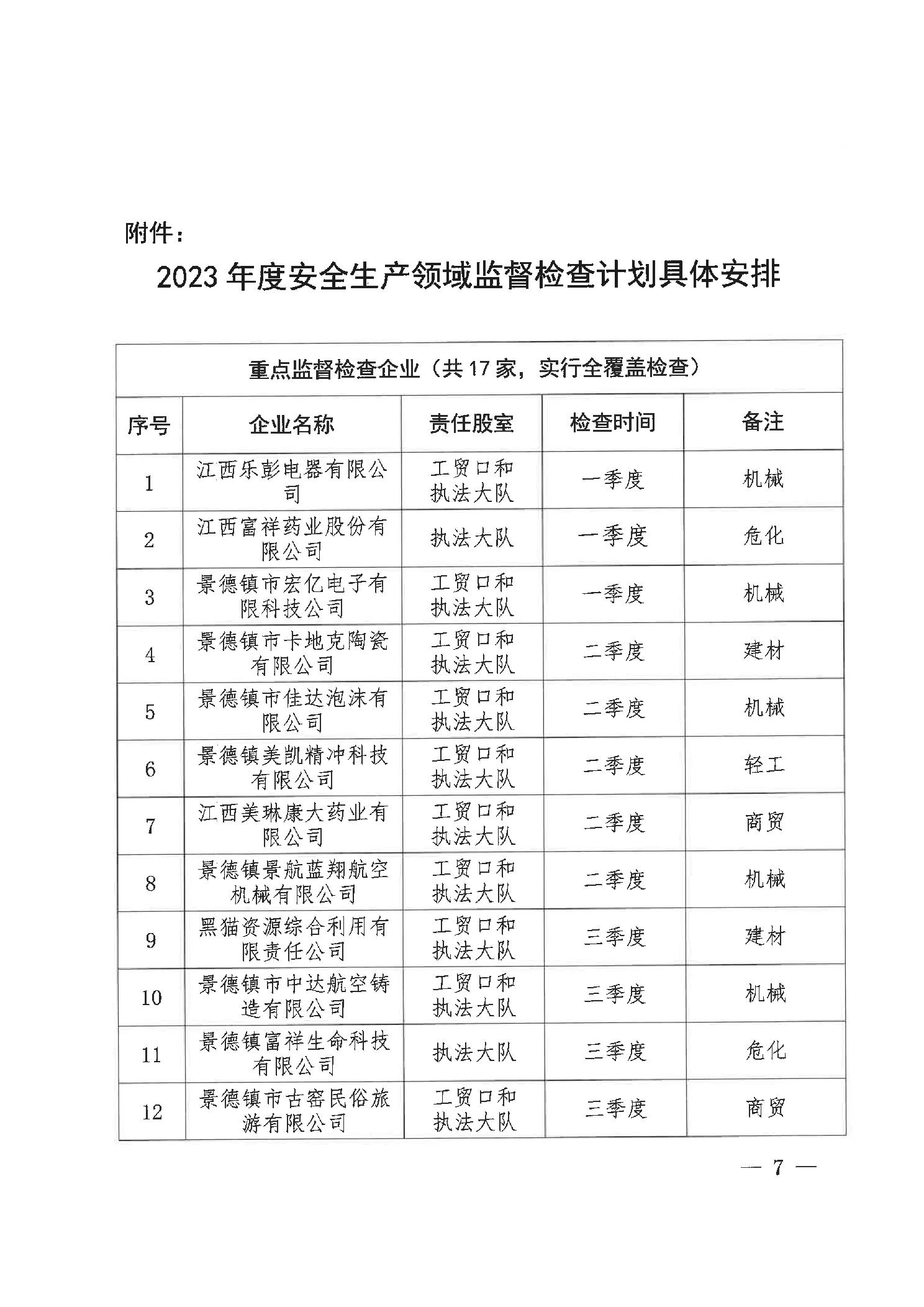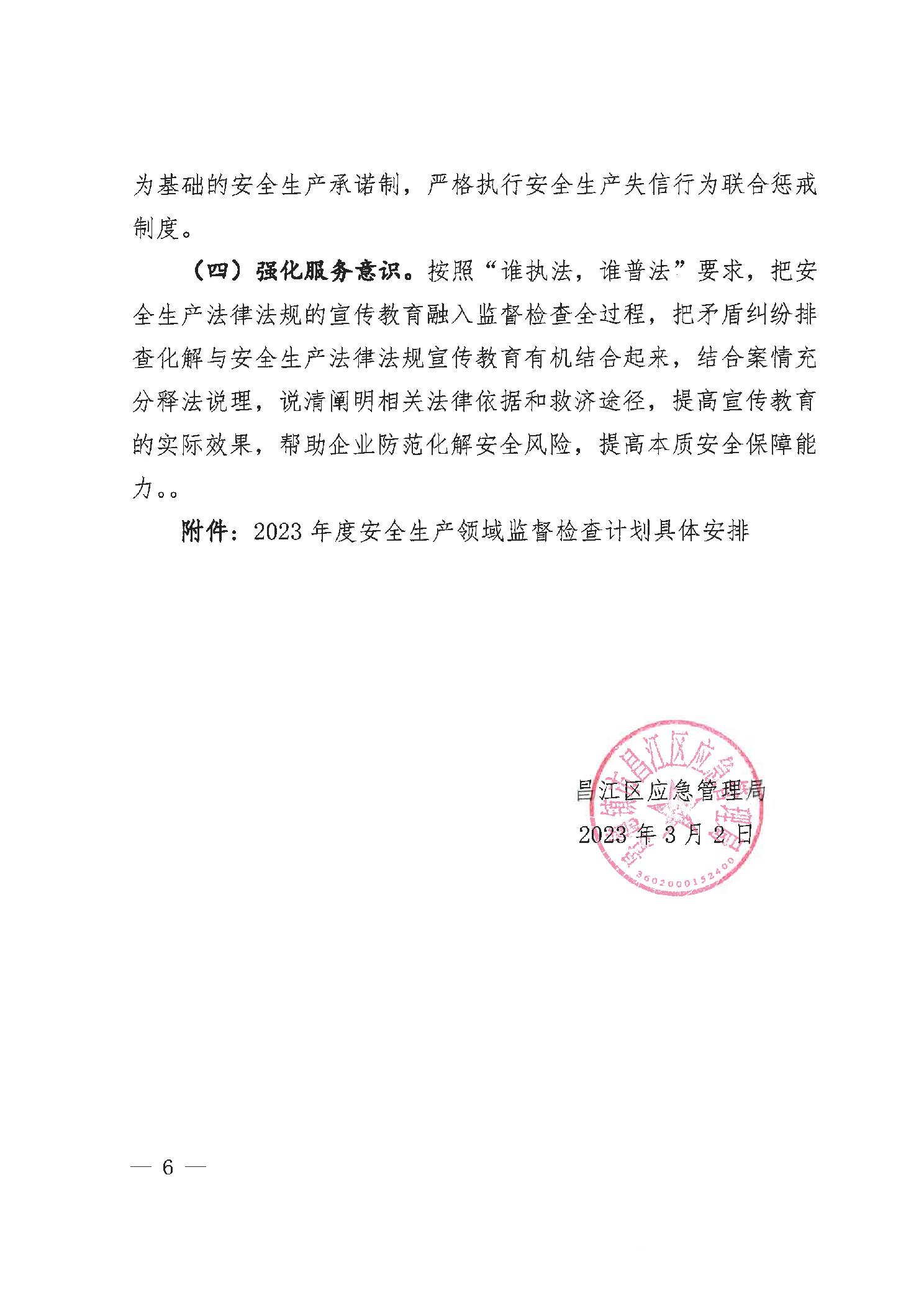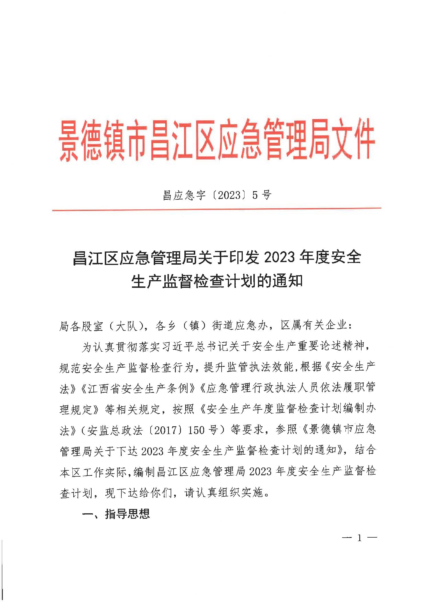 昌江区应急管理局关于印发2023年度安全生产监督检查计划的通知