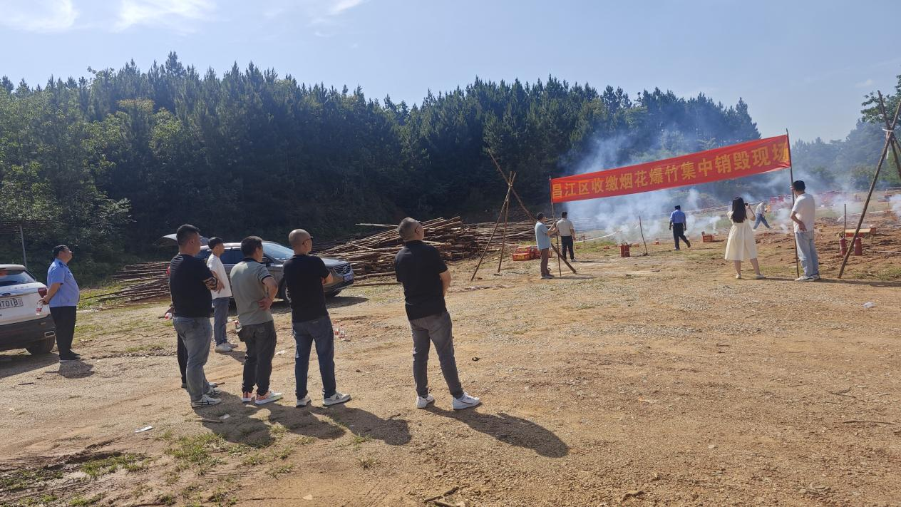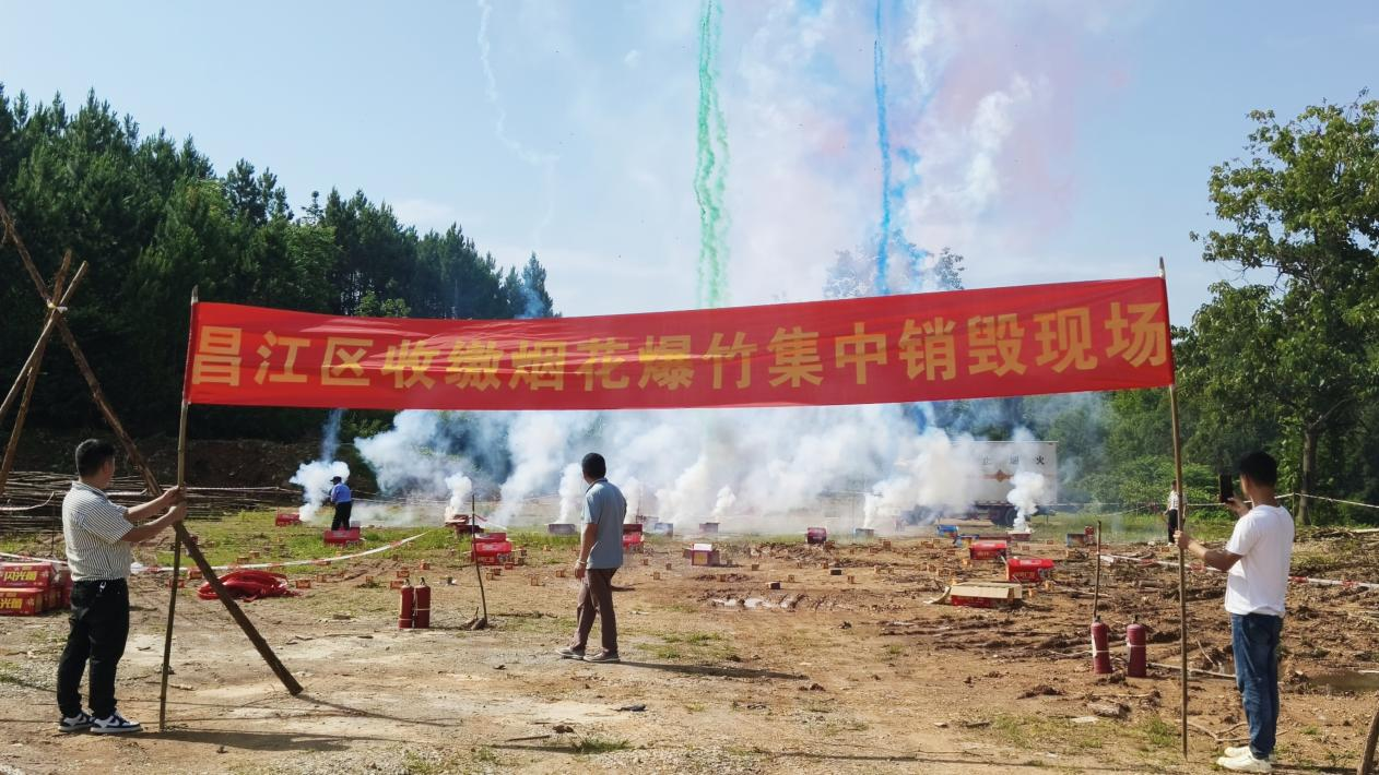 为切实加强烟花爆竹安全管理,消除公共安全隐患,营造“安全生产月”宣传打非治违浓厚氛围,6月16日下午,昌江区应急管理局联合昌江公安分局、荷塘乡政府及景德镇诚隆通贸易有限公司,在荷塘乡大济岭平地开展了烟花爆竹集中销毁行动,现场共销毁各类烟花、爆竹、小产品等458件,有力震慑了非法储存、销售烟花爆竹行为。