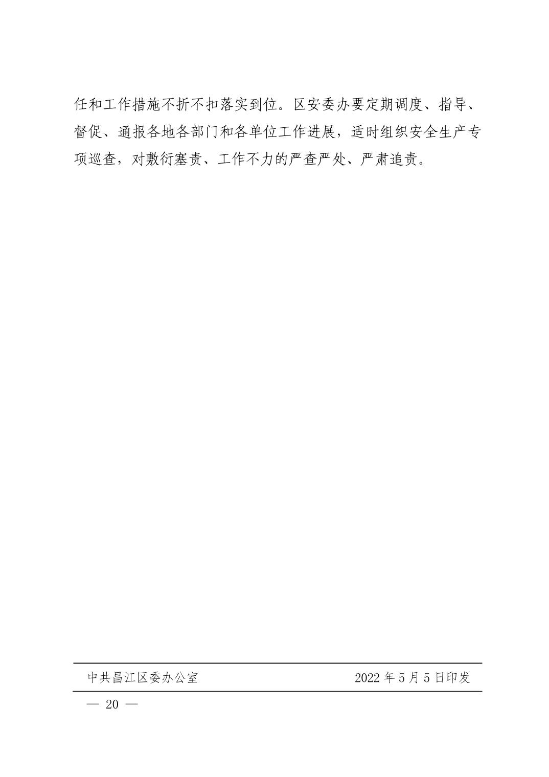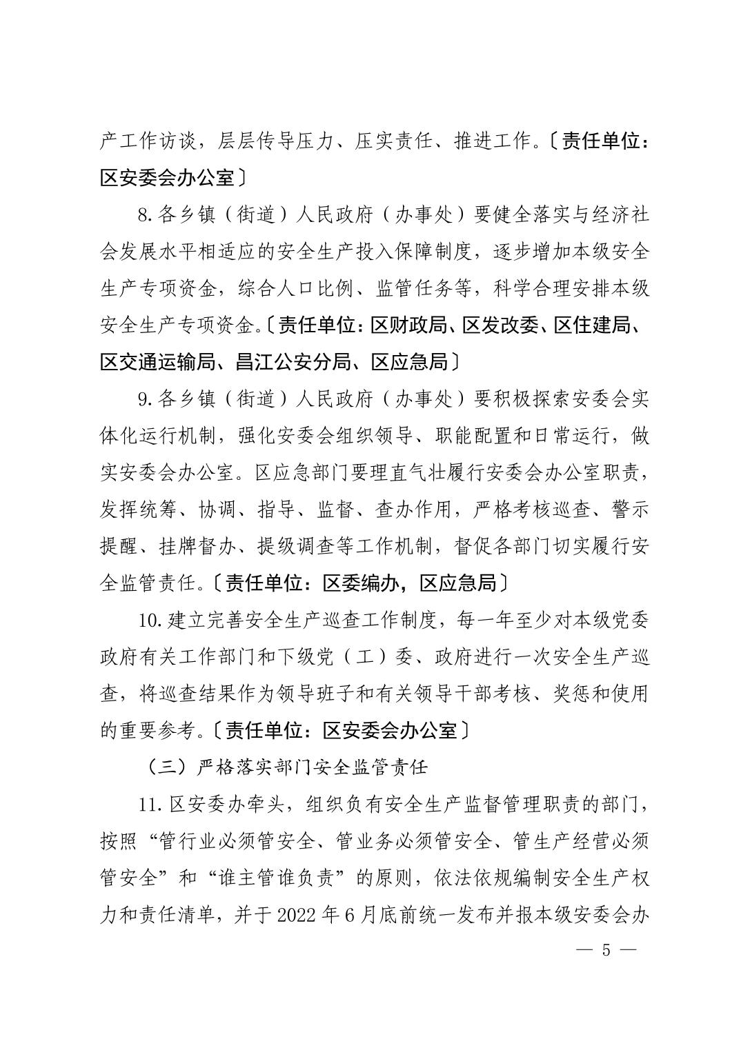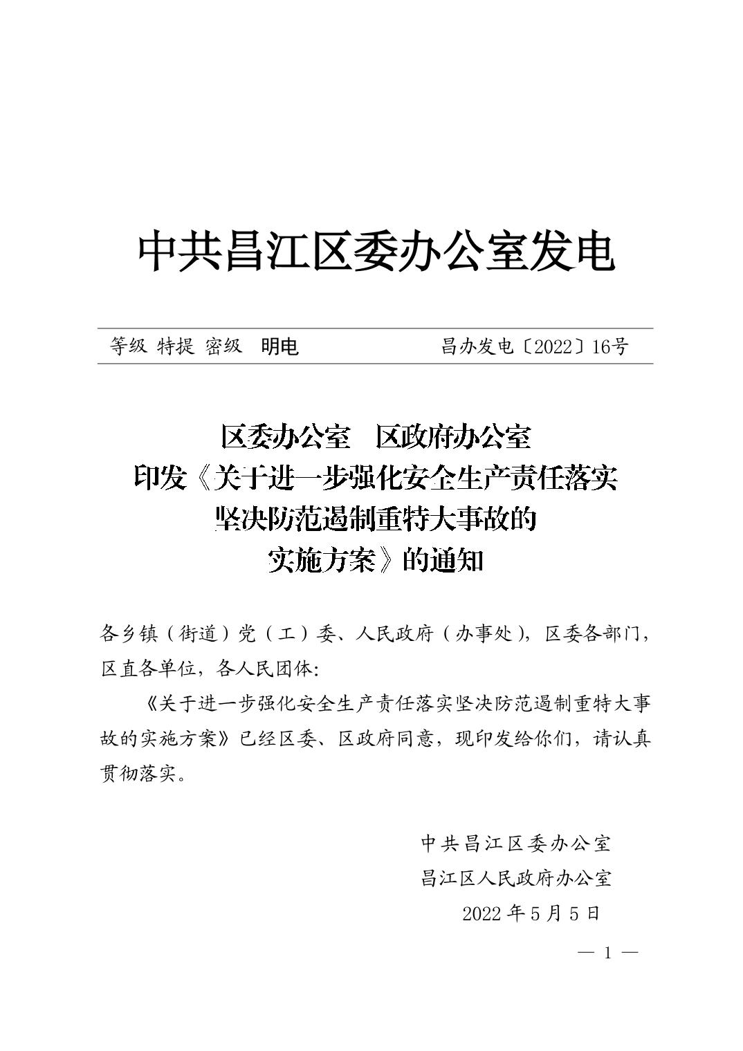 中共昌江区委办公室 昌江区人民政府办公室印发《关于进一步强化安全生产责任落实坚决防范遏制重特大事故的实施方案》的通知