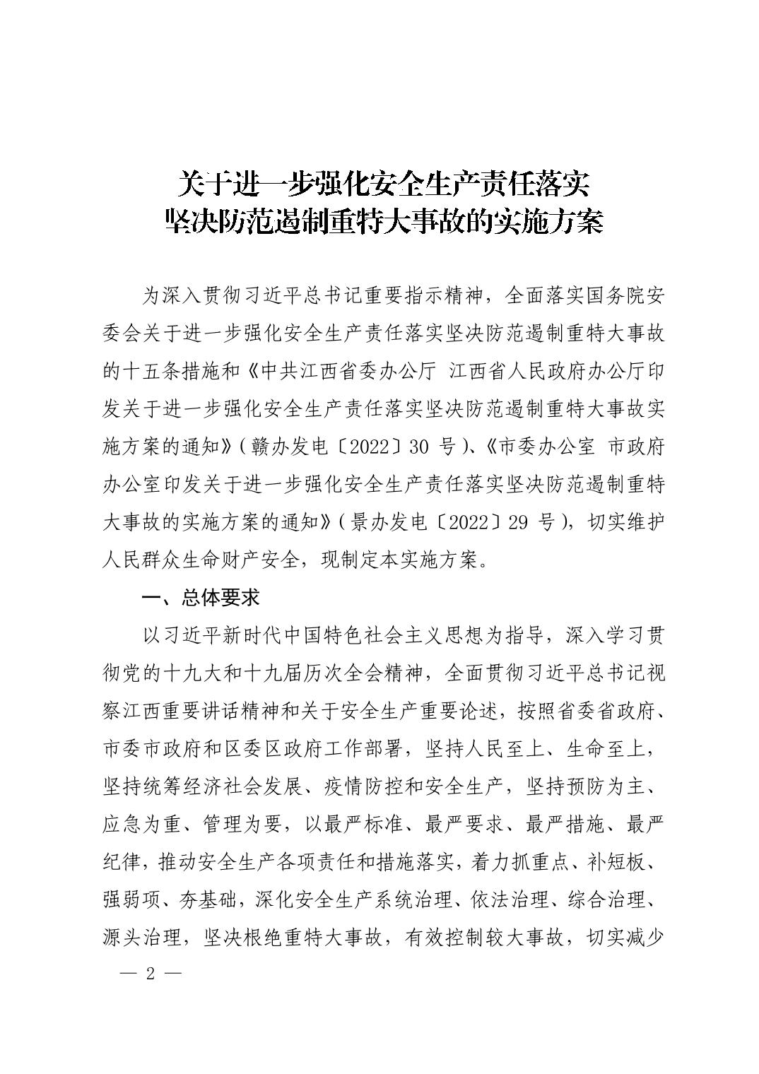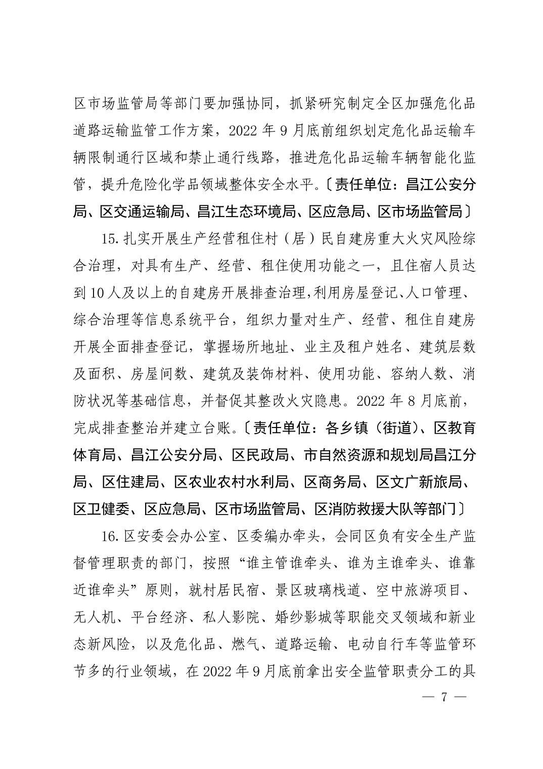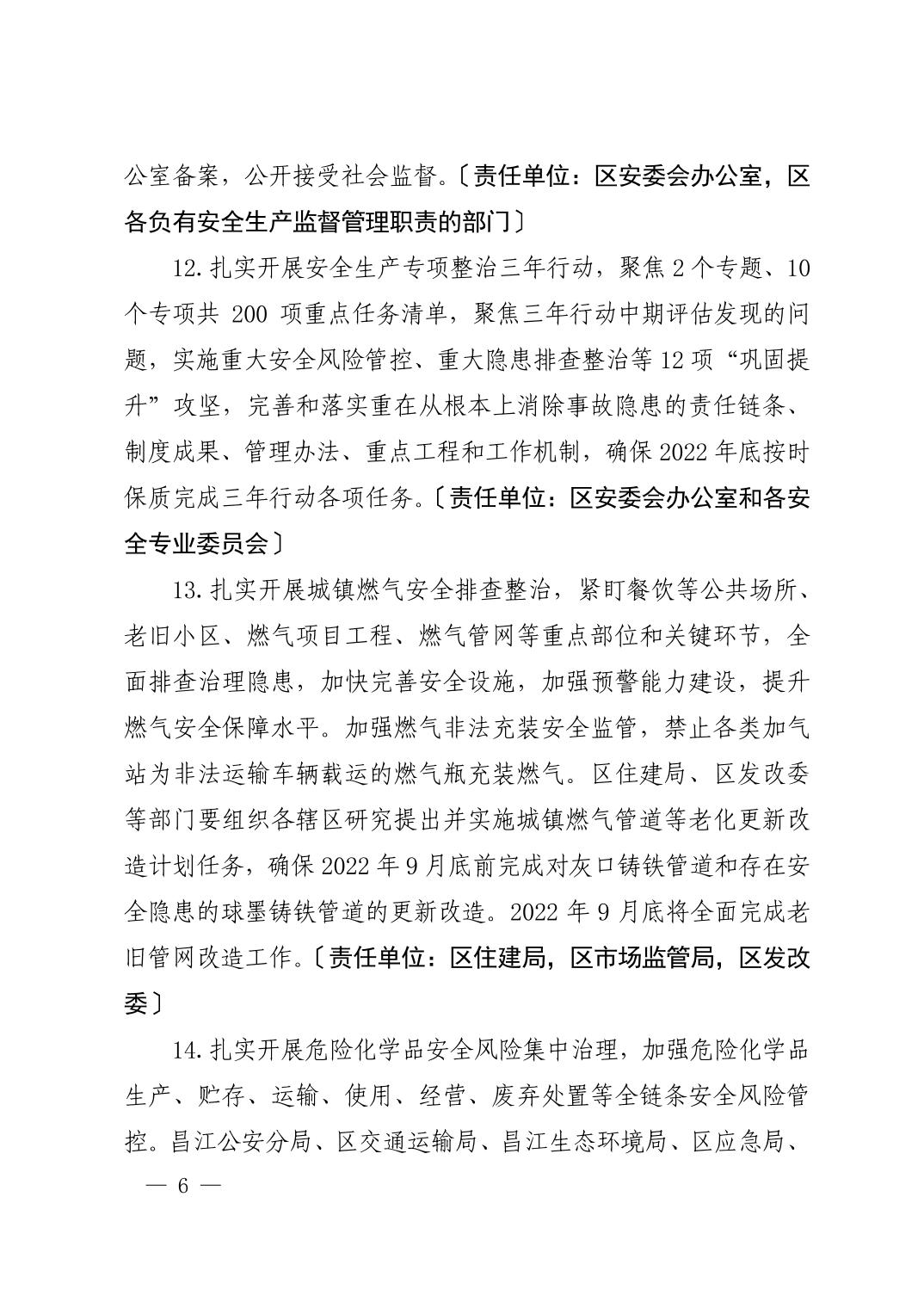 中共昌江区委办公室 昌江区人民政府办公室印发《关于进一步强化安全生产责任落实坚决防范遏制重特大事故的实施方案》的通知