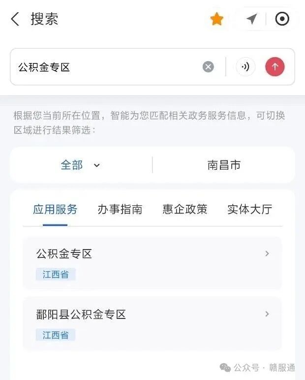 2.首页搜索公积金专区,选择公积金缴纳地。