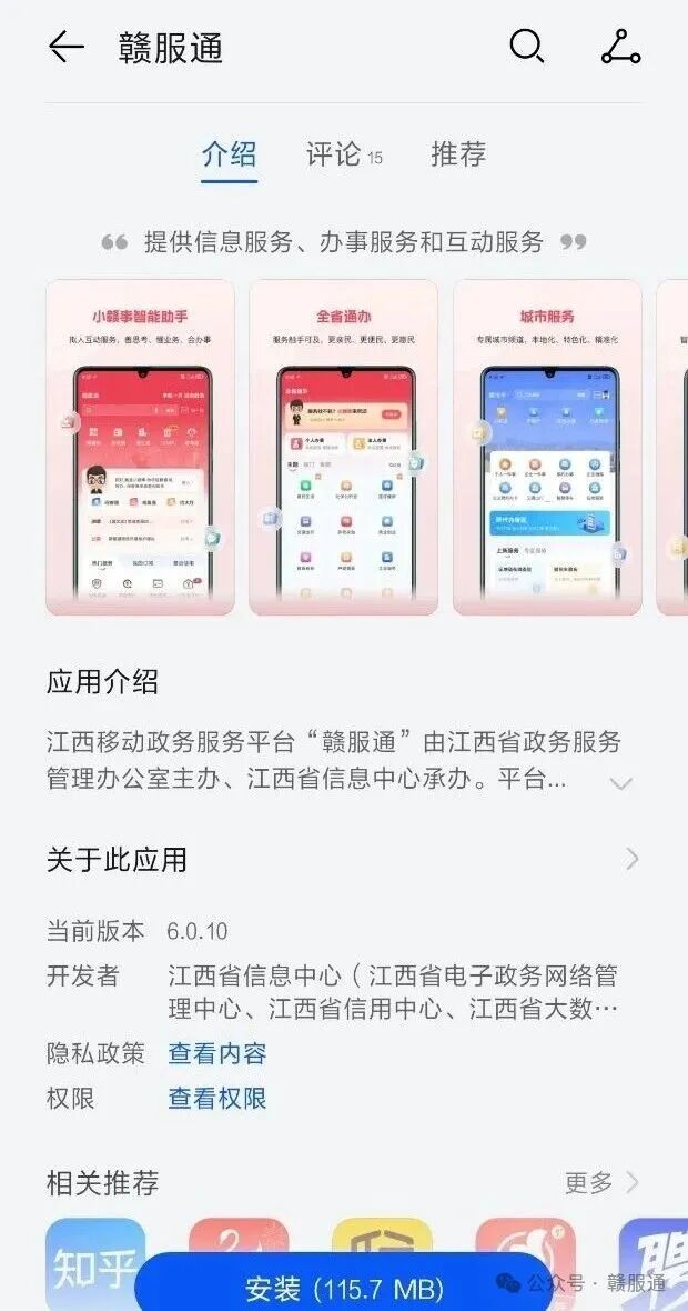 1.在应用市场下载安装“赣服通”APP或者在支付宝搜索“赣服通”小程序进入平台。