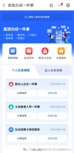 在昌江区政务服务大厅的综合窗口,为您提供“一件事一次办”服务