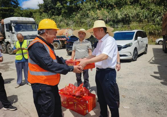 随后,刘茨坪亲切慰问现场施工人员,并送上防暑降温物资。