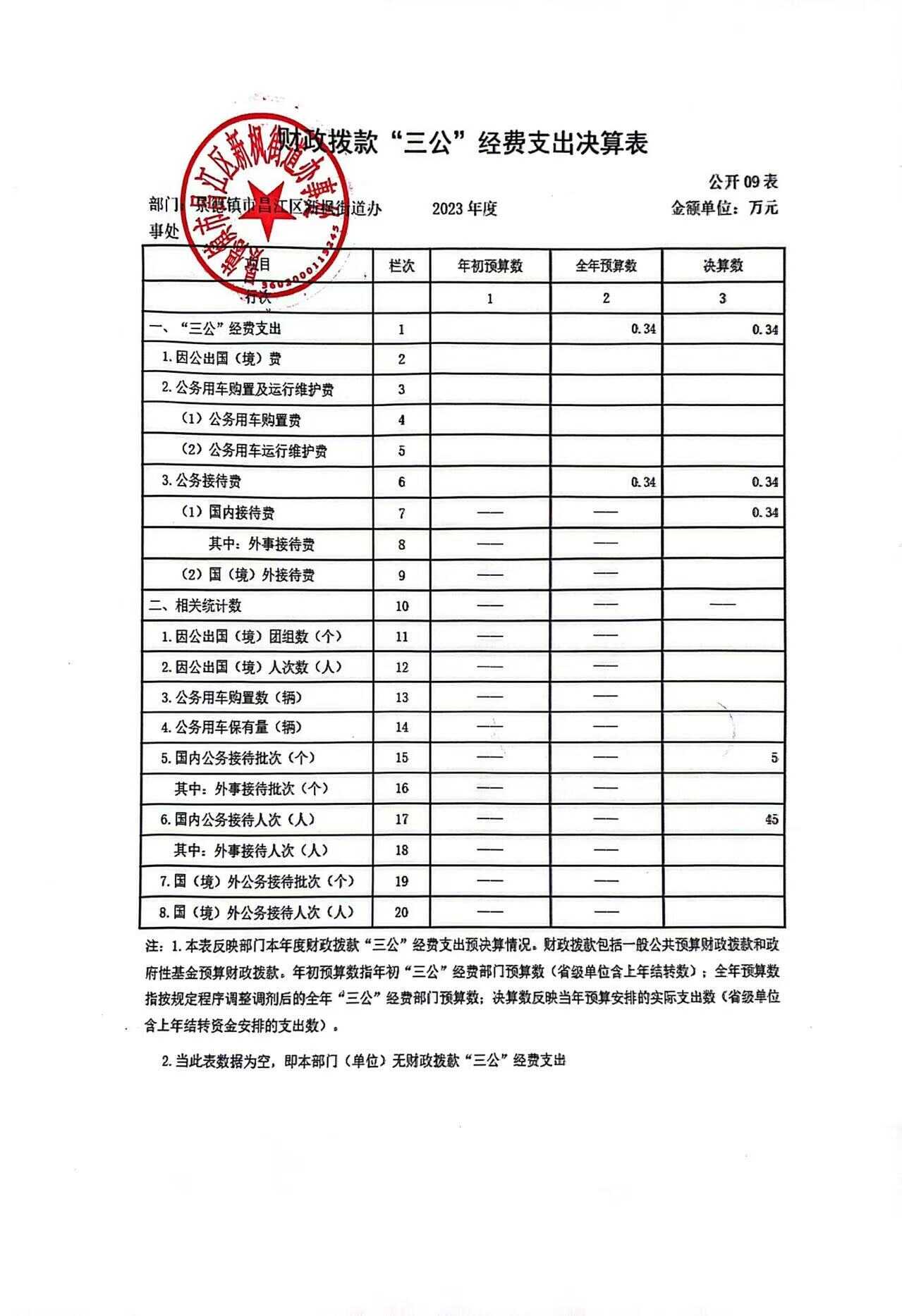 新枫街道2023年“三公”决算公开