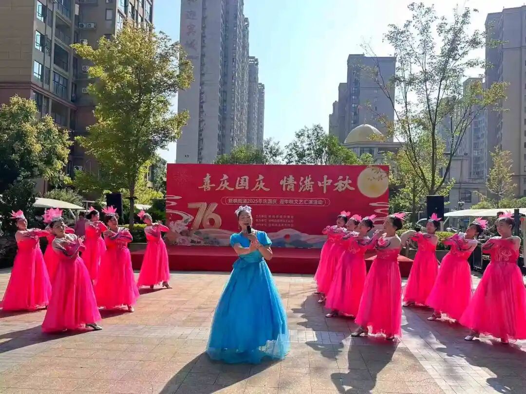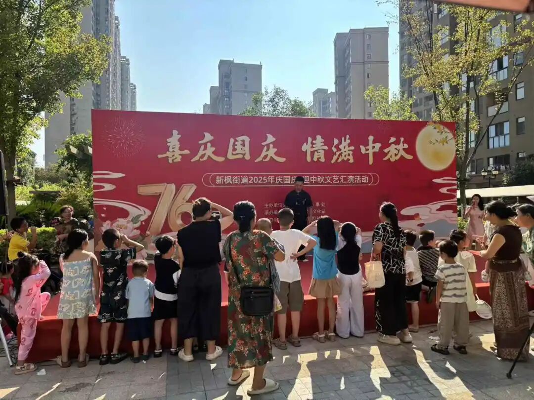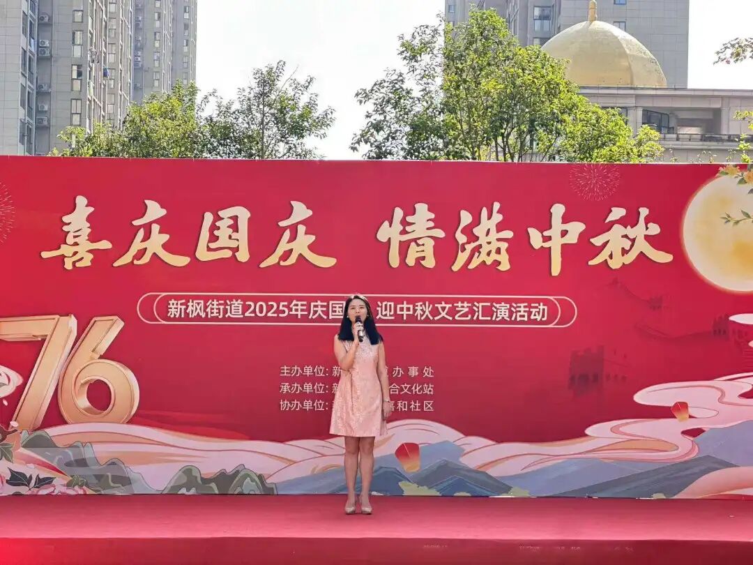 金秋送爽,丹桂飘香,在国庆与中秋双节交汇的美好时节,10月5日上午,新枫街道综合文化站联合嘉和社区新时代文明实践站精心策划的“喜庆国庆,情满中秋”文艺汇演热闹开演。活动现场彩旗飘扬,红灯笼与中秋元素装饰相映成趣,社区居民早早到场,带着期待的笑容等候演出开始,温馨祥和的氛围弥漫在每个角落。