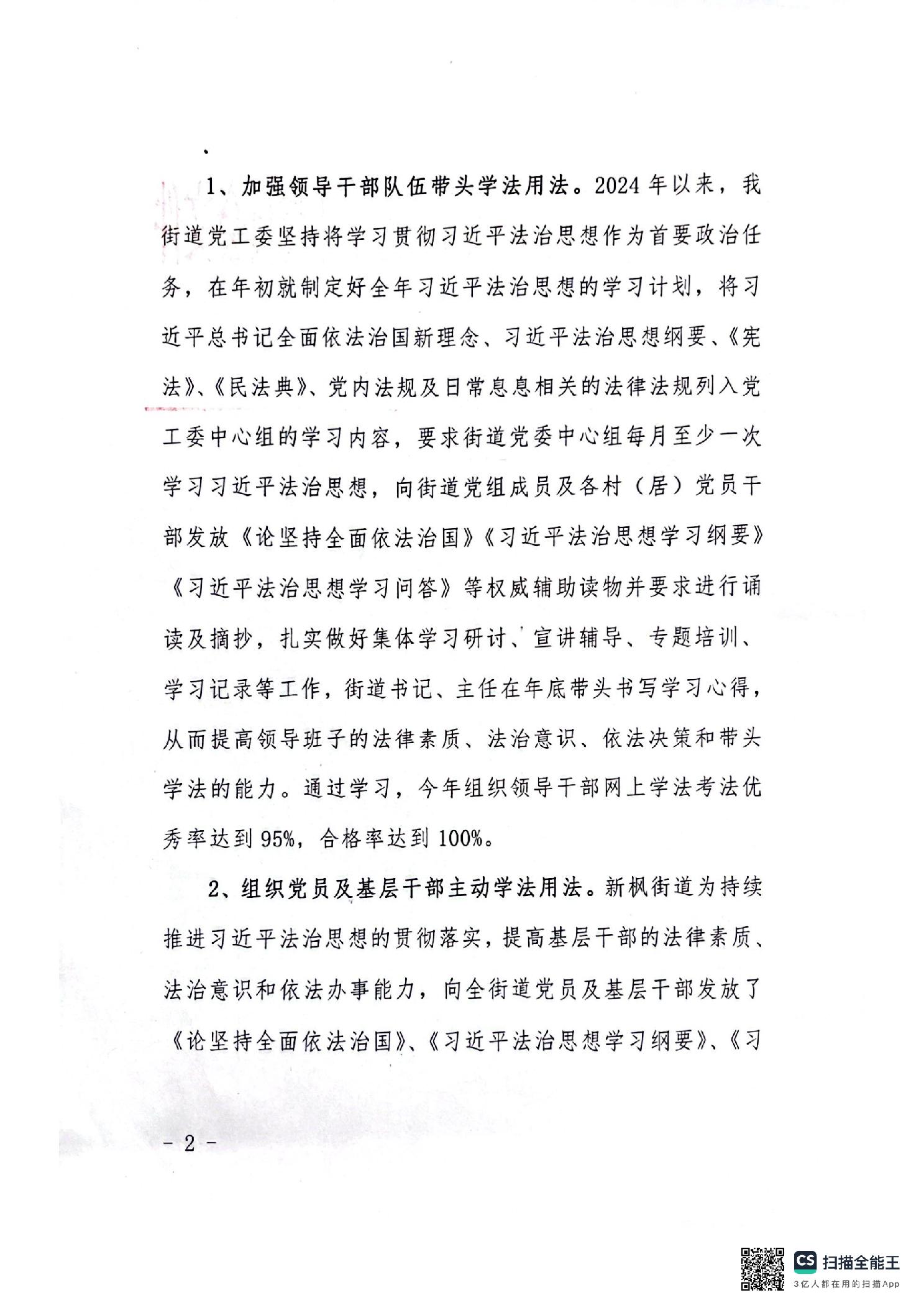 新枫街道关于2024年度法治政府建设工作情况和2025年工作安排的报告