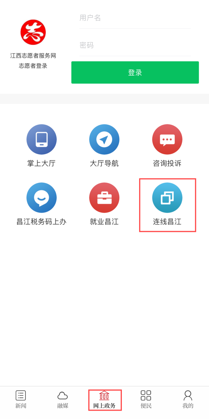 进入秀美昌江,点击“网上政务”——“连线昌江”。