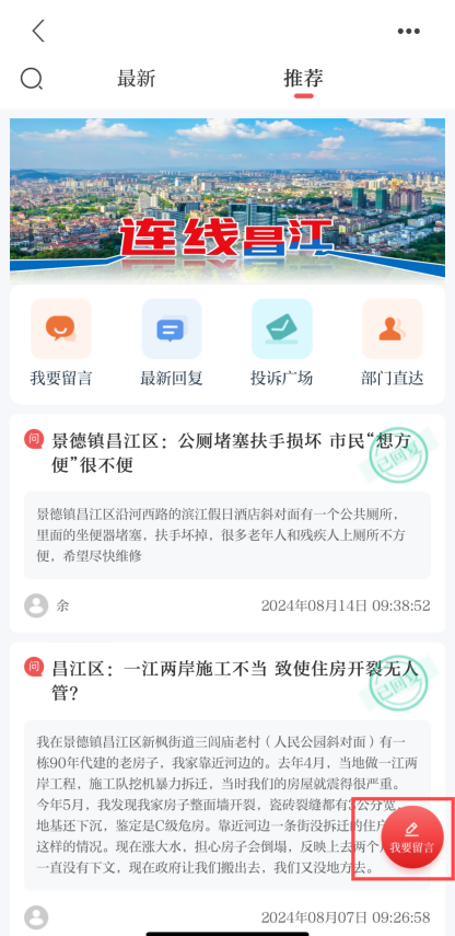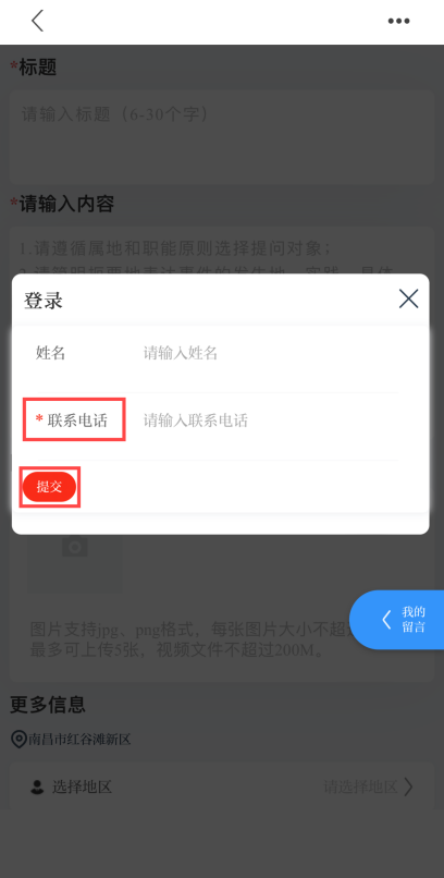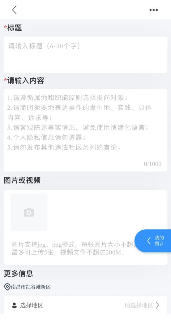 群众投诉、咨询、举报等问题,可点击“我要留言”填写内容。