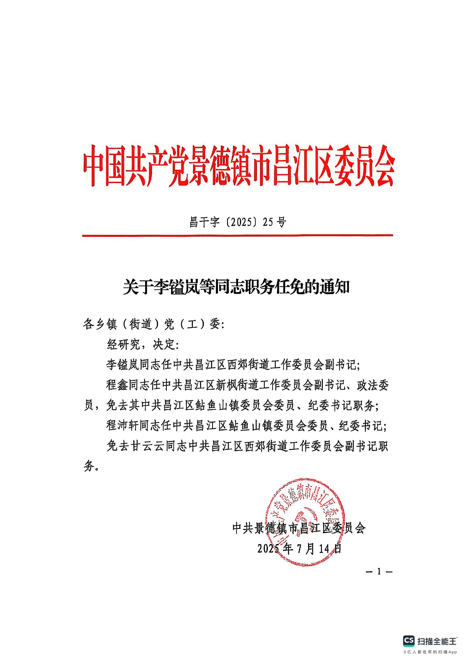关于李镒岚等同志职务任免的通知