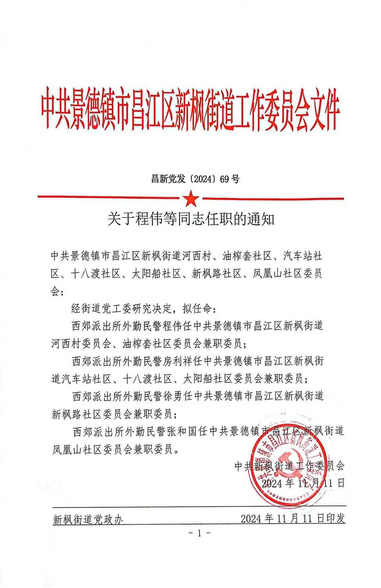 关于程伟等同志任职的通知