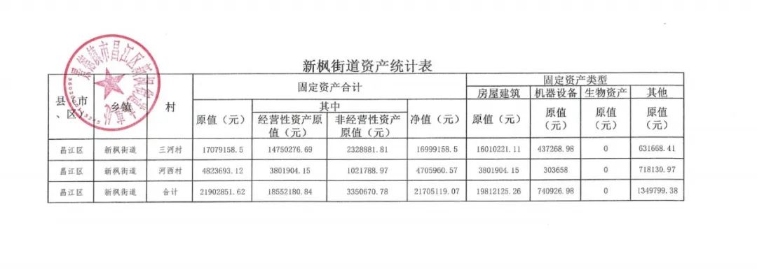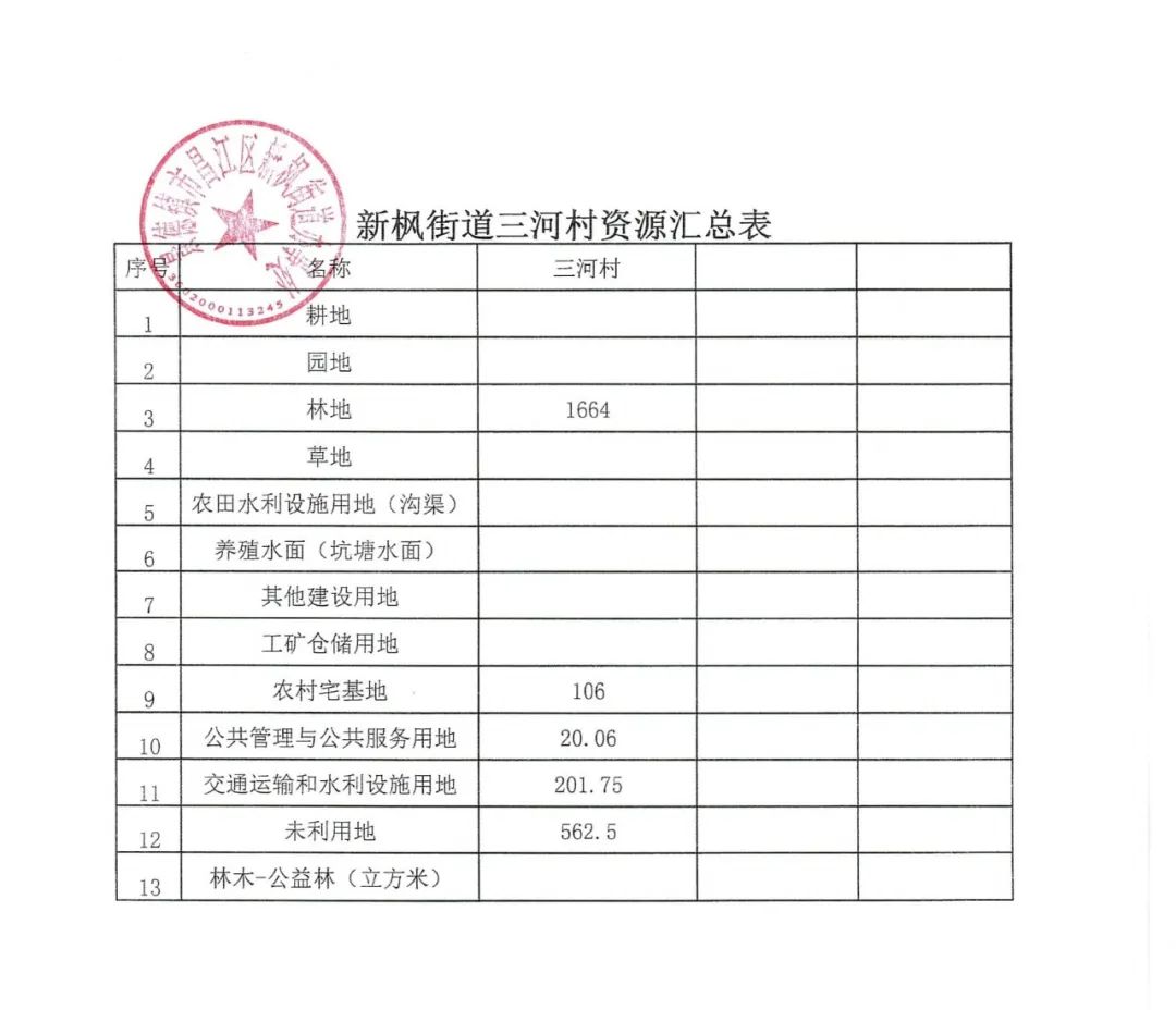 新枫街道农村集体资产、资源公示
