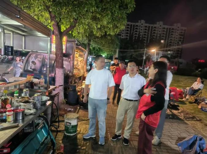健全长效监管机制,织密责任网络。组建食品安全监管队伍,配备14名协管员与信息员,明确37名包保干部责任区域,对辖区内1354家经营主体开展全面督导。由街道党工委委员、办事处常务副主任余形春带队,联合市监、应急、消防等部门,深入各村居人员密集场所、夜市小摊点、小作坊加工点等进行综合检查。在4个菜场,执法人员当场查获“猪肉冒充牛肉”的欺诈行为,并责令立即整改,有效挽回群众损失。