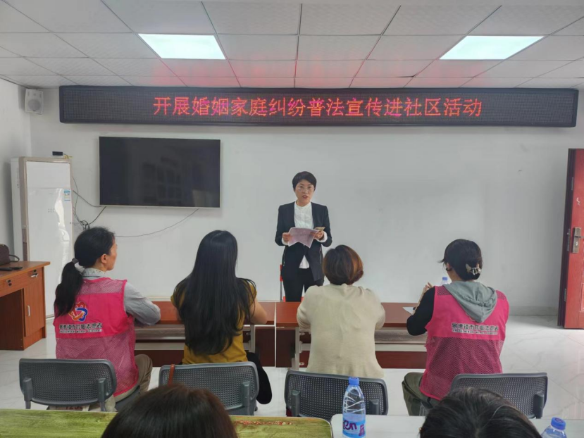 为进一步提高辖区居民法律意识,增强法制观念,10月14日上午,新枫街道妇联、司法所锦芝调解室走进哪吒庙社区开展法律明白人、婚姻家庭纠纷普法进社区主题宣传活动。