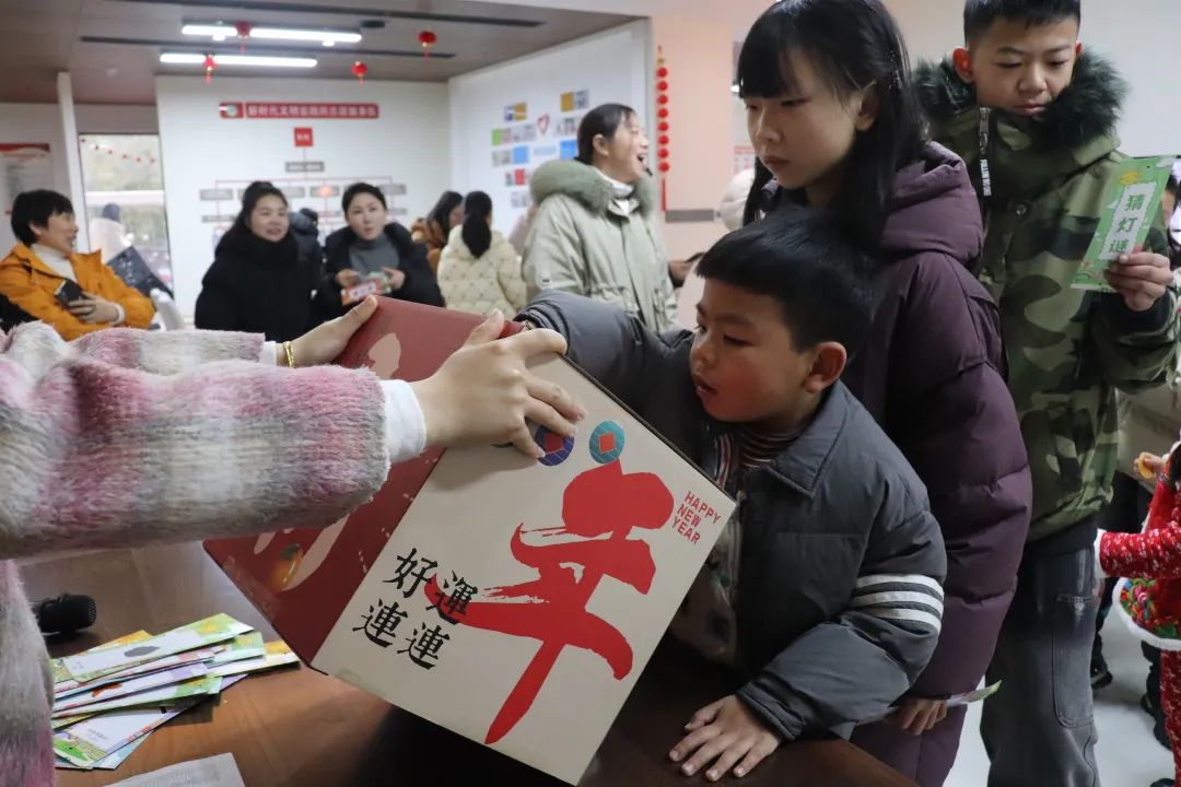 活动现场,悬挂着各式各样的灯谜。孩子们三五成群,热烈讨论,一旦有人猜出谜底,便兴奋地冲向兑奖处,兑换礼品。 欢声笑语回荡在整个现场......