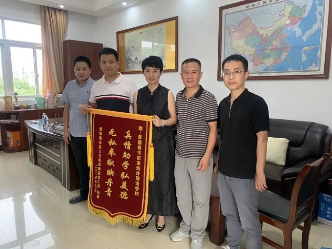 近日,一面由昌江区新枫街道党工委赠送的锦旗送到了景德镇市田家炳外国语学校党支部书记余健的手中。这面锦旗显得格外珍贵,上面绣制着“真情助学弘美德、无私奉献映丹青”的字样。