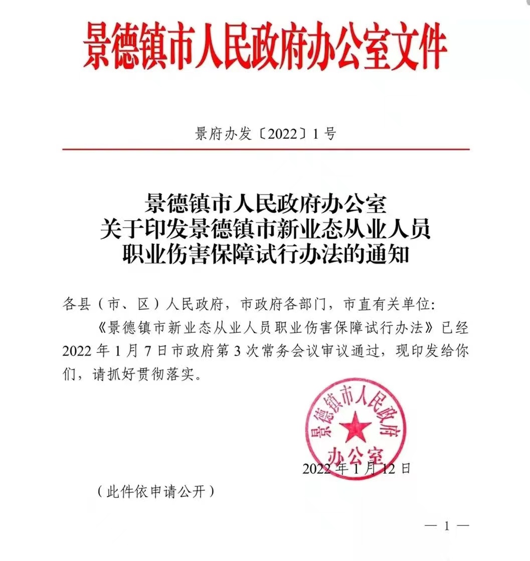 【上级文件】《景德镇市新业态从业人员职业伤害保障试行办法》全文
