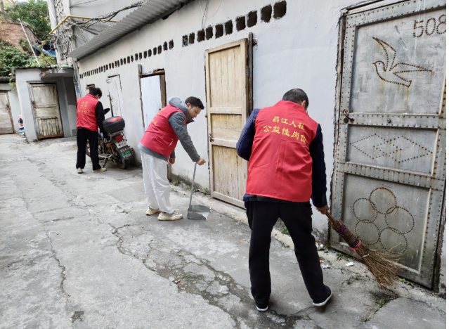 活动中,公益岗人员与志愿者们身着统一标识服装,携带扫帚、铁铲、垃圾袋等清洁工具,分成多个作业小组有序推进整治工作。在居民楼道内,大家耐心清理居民堆放的废旧家具、纸箱等杂物,畅通消防通道;在小区绿化带及公共区域,众人弯腰拔除杂草、捡拾白色垃圾,清运积存的生活垃圾和建筑垃圾;对辖区内卫生死角、背街小巷等易忽视区域,工作人员更是细致排查、彻底清扫,确保整治无盲区、无遗漏。