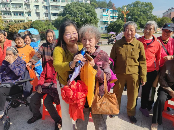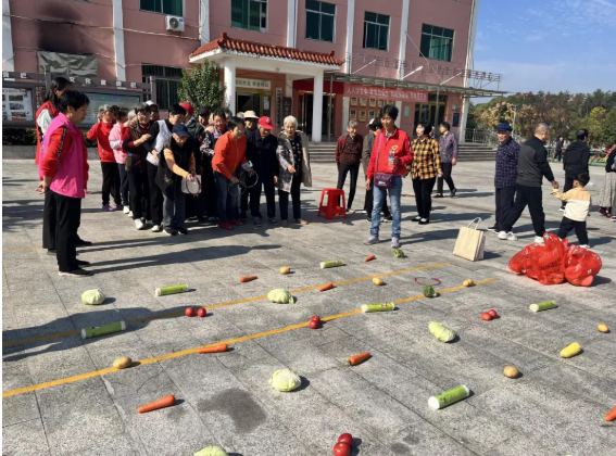 健康关怀环节备受青睐,志愿者医生们耐心为老人们测量血压、检测血糖,细致询问身体状况,针对常见老年病提供饮食、用药建议,普及冬季养生知识,用专业服务为老人们的健康保驾护航。趣味互动环节更是热闹非凡:“水果蔬菜套圈”游戏区,各类新鲜蔬果整齐排列,老人们手持套圈瞄准目标,套中后的欢呼声此起彼伏,收获的不仅是新鲜食材,更是满满的快乐;“击鼓传花”环节中,欢快的鼓声响起,彩花在老人们手中依次传递,鼓声骤停时,拿到彩花的老人主动上台哼唱经典老歌、分享生活趣事,台下掌声、笑声不断,现场洋溢着欢乐祥和的氛围。