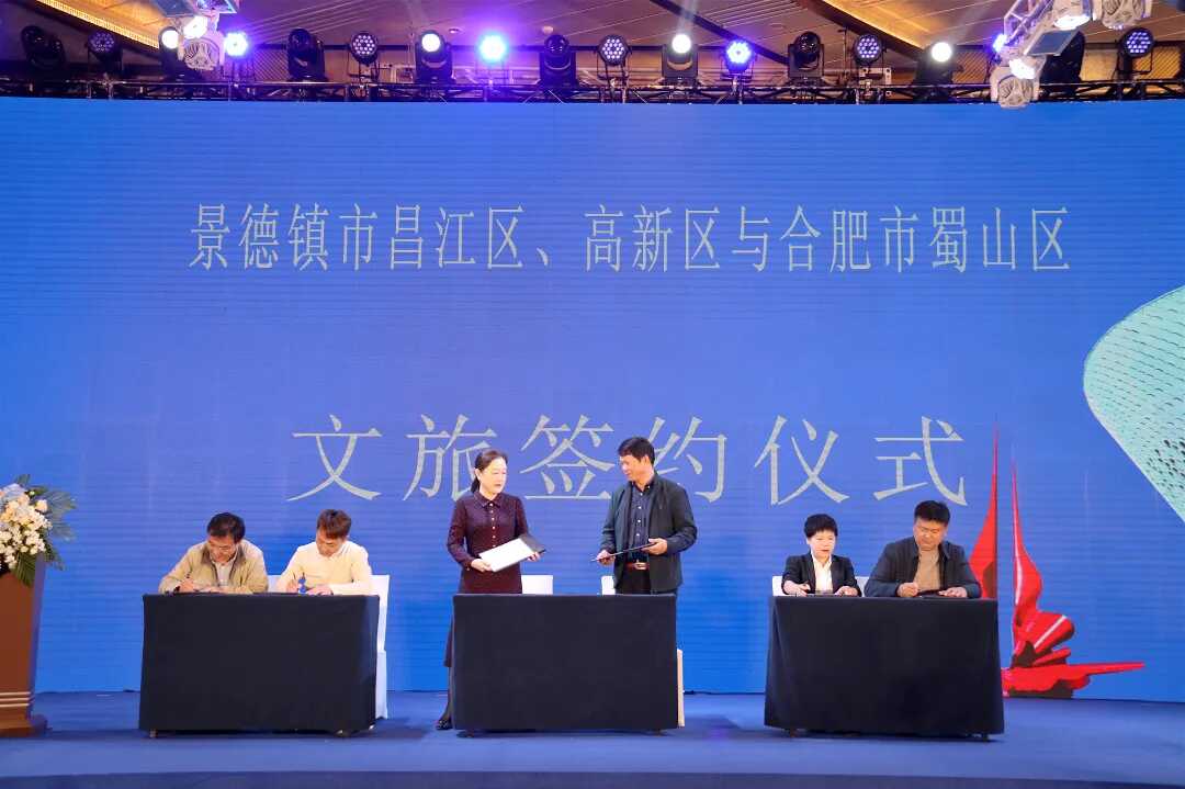 活动中,蜀山区文旅局副局长赵道柱、昌江区文旅局局长陈玉芳以及合肥市和景德镇市文旅企业代表举行合作签约。双方表示将坚持以文塑旅、以旅彰文,加强交流互鉴、深化研学合作、拓展市场空间,积极推动两地文旅深度合作,共同解锁更多文旅融合的创新密码。