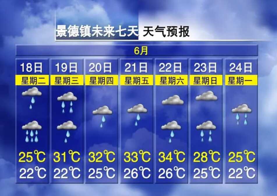 景德镇市气象台2024年06月18日08时54分发布暴雨黄色预警信号。