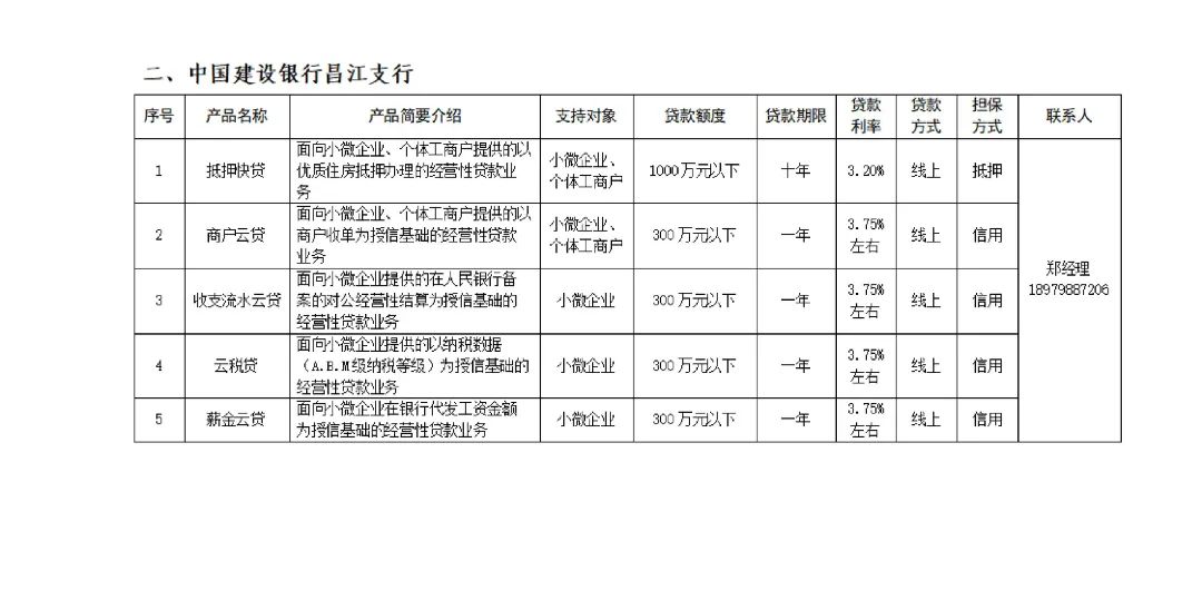 以下是本期宣传推介的支持小微企业银行信贷产品
