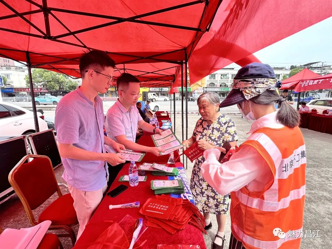 为进一步防范非法集资,保护广大群众的切身利益,6月15日,昌江区政府金融办联合区委政法委、昌江公安分局、区法院、区检察院、区市监局、吕蒙街道、九江银行等多家单位、部门,在豪德贸易广场中心街开展“守住钱袋子·护好幸福家”防范非法集资宣传月活动,全力营造“自觉远离和抵制非法集资”的浓厚氛围。