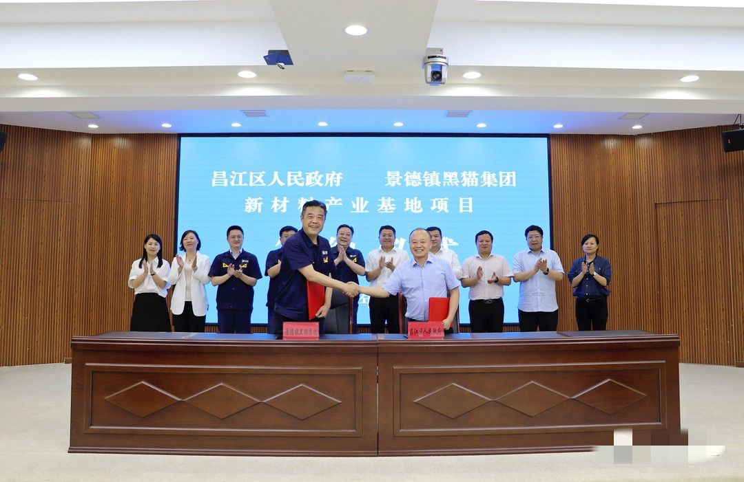 5月26日,昌江区与景德镇黑猫集团新材料产业基地项目签约仪式举行。高新区管委会主任、昌江区委书记倪卫春,景德镇黑猫集团党委书记、董事局主席王耀出席并致辞。昌江区委副书记、区长伊文斌主持仪式。景德镇黑猫集团党委副书记、总经理汪羽,黑猫集团副总经理、江西黑猫炭黑股份有限公司党委副书记、总经理魏明,黑猫集团副总经理、董事会秘书李毅,黑猫集团总经理助理、市焦化能源有限公司党总支书记、董事长朱明红,江西跃华药业有限公司党总支书记、董事长郝丽芳,昌江区委副书记江智峰,区委常委、常务副区长乐先锋,区委常委、统战部部长周薇,副区长聂刚出席仪式。