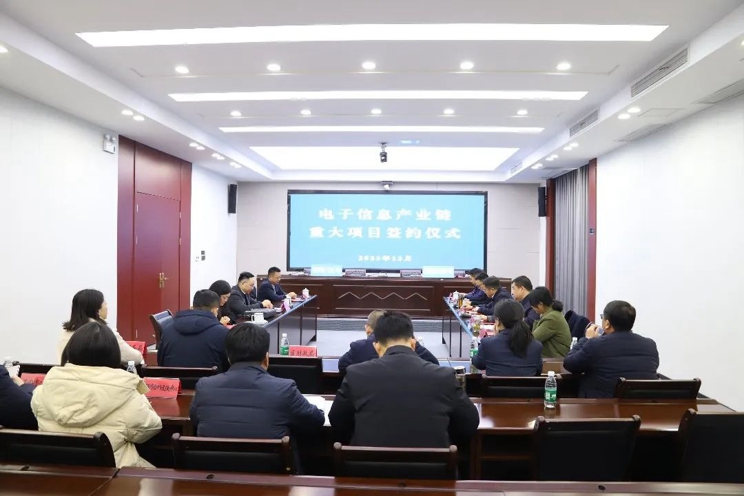 12月27日,昌江区举行电子信息产业链重大项目签约仪式,高新区管委会主任、昌江区委书记倪卫春出席仪式并见证签约,区委副书记、区长伊文斌致辞,区领导彭新建、周薇、汪维,深圳市美思特电子有限公司总经理王涛、汇联峰科技有限公司总经理李文灿、副总经理曹金娥参加仪式。