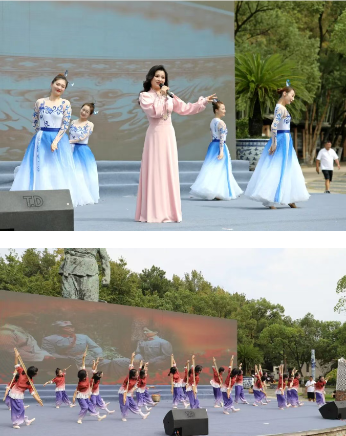市文化馆带来的歌伴舞《千年瓷韵》率先登场,舞者裙摆翻飞间尽显瓷都风情,引得台下游客纷纷举起手机拍摄记录。少儿舞蹈《朱德的扁担》生动再现革命岁月,孩子们稚嫩却坚定的舞姿,让游客们频频点头称赞;诗朗诵《我大写的中国》慷慨激昂,不少游客跟着轻声吟诵,满腔爱国之情油然而生。