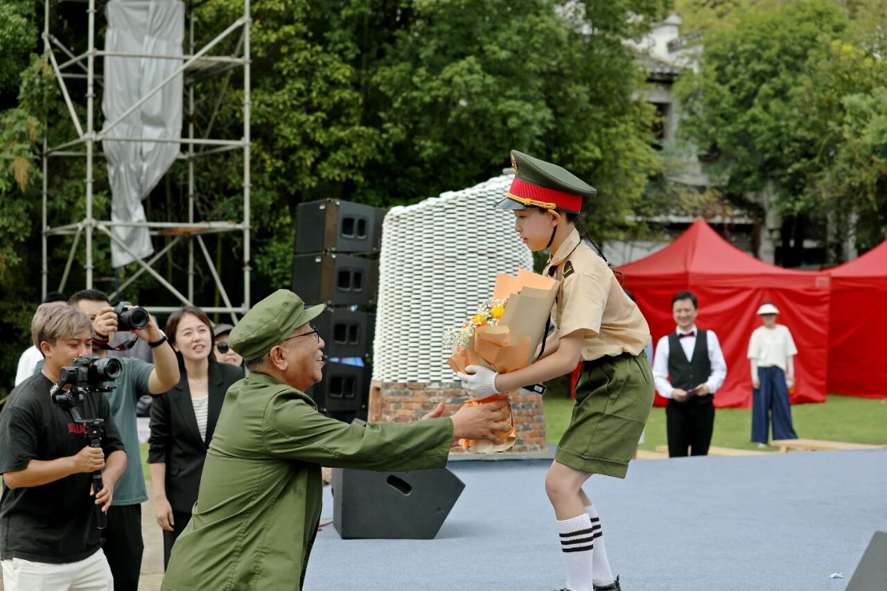 活动现场,少先队员代表向退伍老兵代表敬献鲜花,以此表达最诚挚的敬意与最热烈的欢迎。活动在《我和我的祖国》悠扬的旋律中拉开帷幕,红色经典歌曲与陶瓷主题轻音乐交织回荡。
