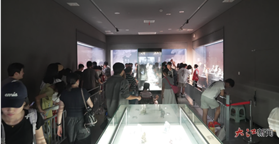 为应对假期大客流,该博物馆提前做好充足准备:延长开放时间至18:00,满足游客参观需求;发布微信公众号出行指南,标注周边7个停车场位置,引导有序停车;广场区域增设大型遮阳伞、启动喷雾降温系统,二层服务台备齐防暑药品,为高温天气下的游客送去清凉。
