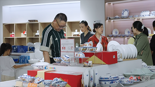 游客在景德镇中国陶瓷博物馆购买陶瓷文创