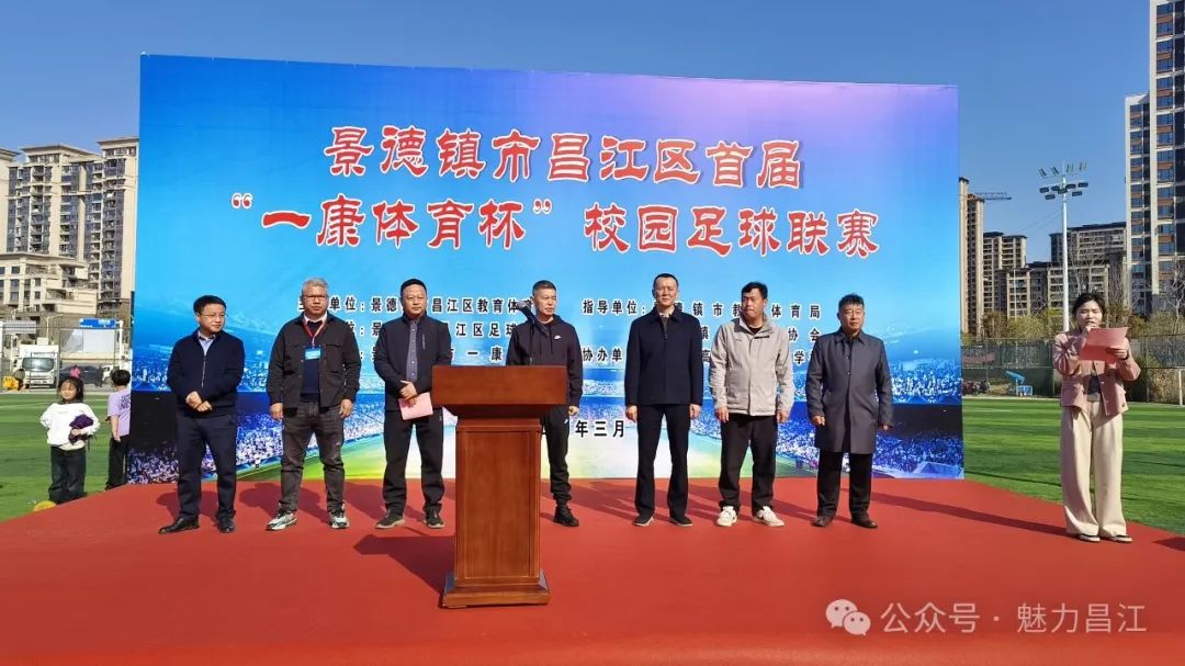 3月22日,昌江区首届“一康体育杯”校园足球联赛开幕式在区社会足球场举办。比赛由景德镇市教体局指导、区教体局主办,旨在营造浓厚的校园足球文化氛围,进一步促进校园体育文化发展。