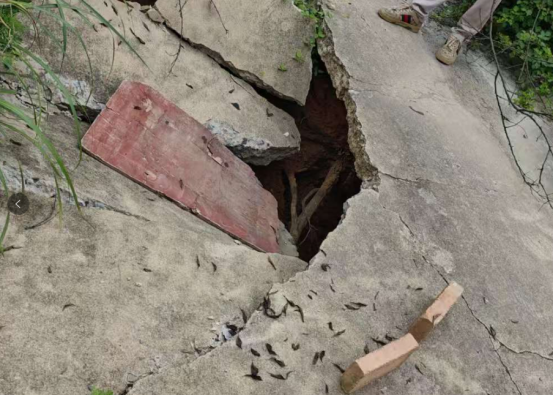 近日,关山村柴埠村小组村民反映,柴埠主干道因下水管道长期排水及车辆通行影响,出现路面塌陷、路基松动问题,塌陷区域深度约1米,已严重影响周边居民及车辆通行,存在安全隐患。