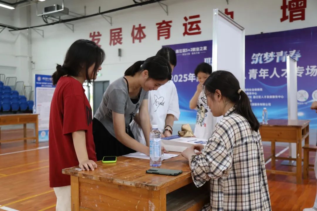 昌江区抢抓高校毕业生离校前关键节点,举办“职引未来 筑梦青春”2025年高校毕业生、青年人才专场招聘会,搭建供需对接桥梁,持续推出线上线下招聘服务活动,助力高校毕业生等青年人才高质量充分就业。5月23日,景德镇陶瓷技师学院体育馆内,260余名高校学子和青年人才在昌江区招聘企业展位前排队咨询。