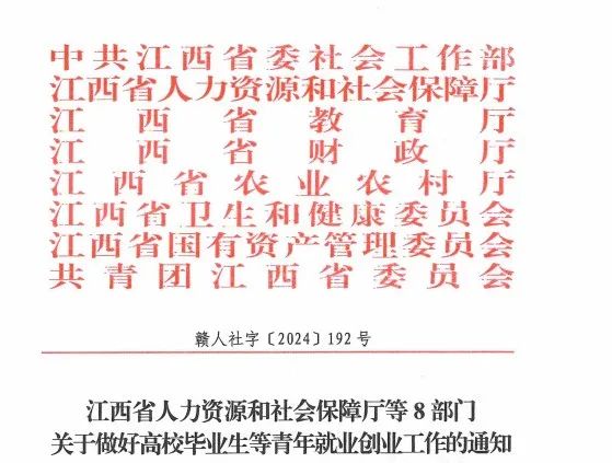为深入实施就业优先战略,建立常态化援企稳岗帮扶机制,多措并举稳定和扩大就业岗位,全力促发展惠民生,近日,江西省人力资源和社会保障厅等8部门发布了关于做好高校毕业生等青年就业创业工作的通知