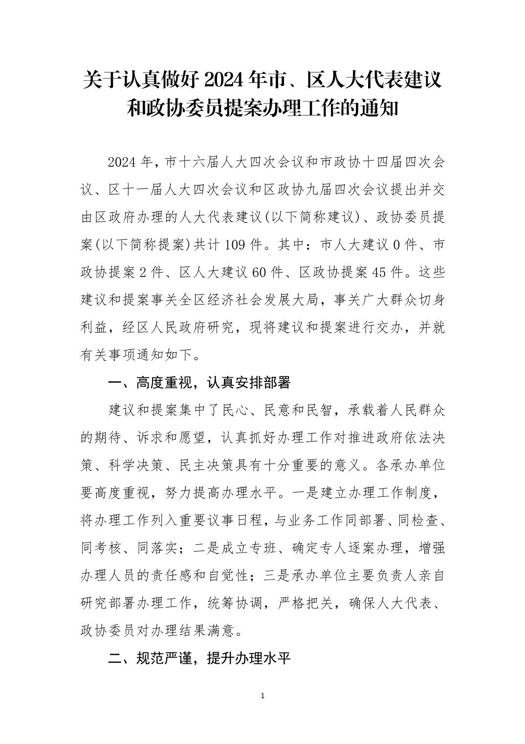 关于认真做好2024年市、区人大代表建议和政协委员提案办理工作的通知