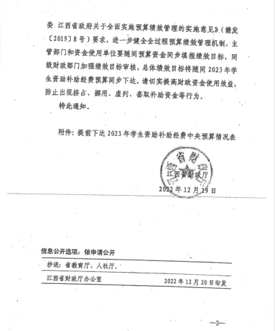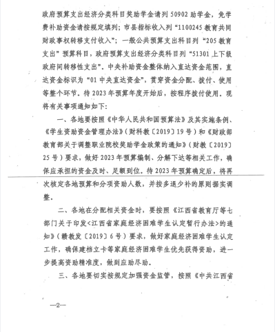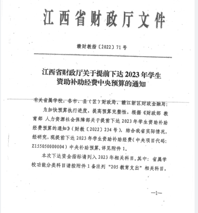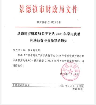 景德镇市财政局关于下达2023年学生资助补助经费中央预算的通知
