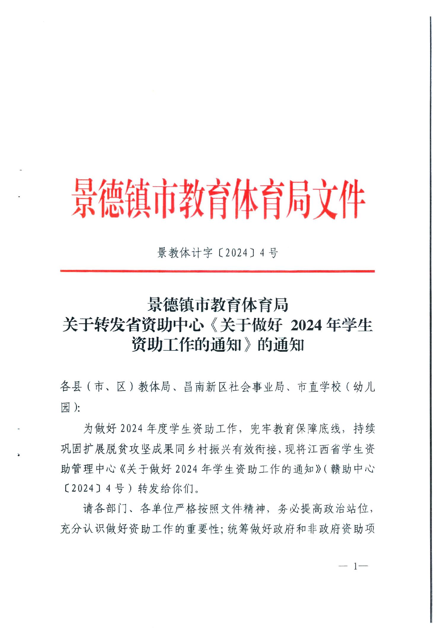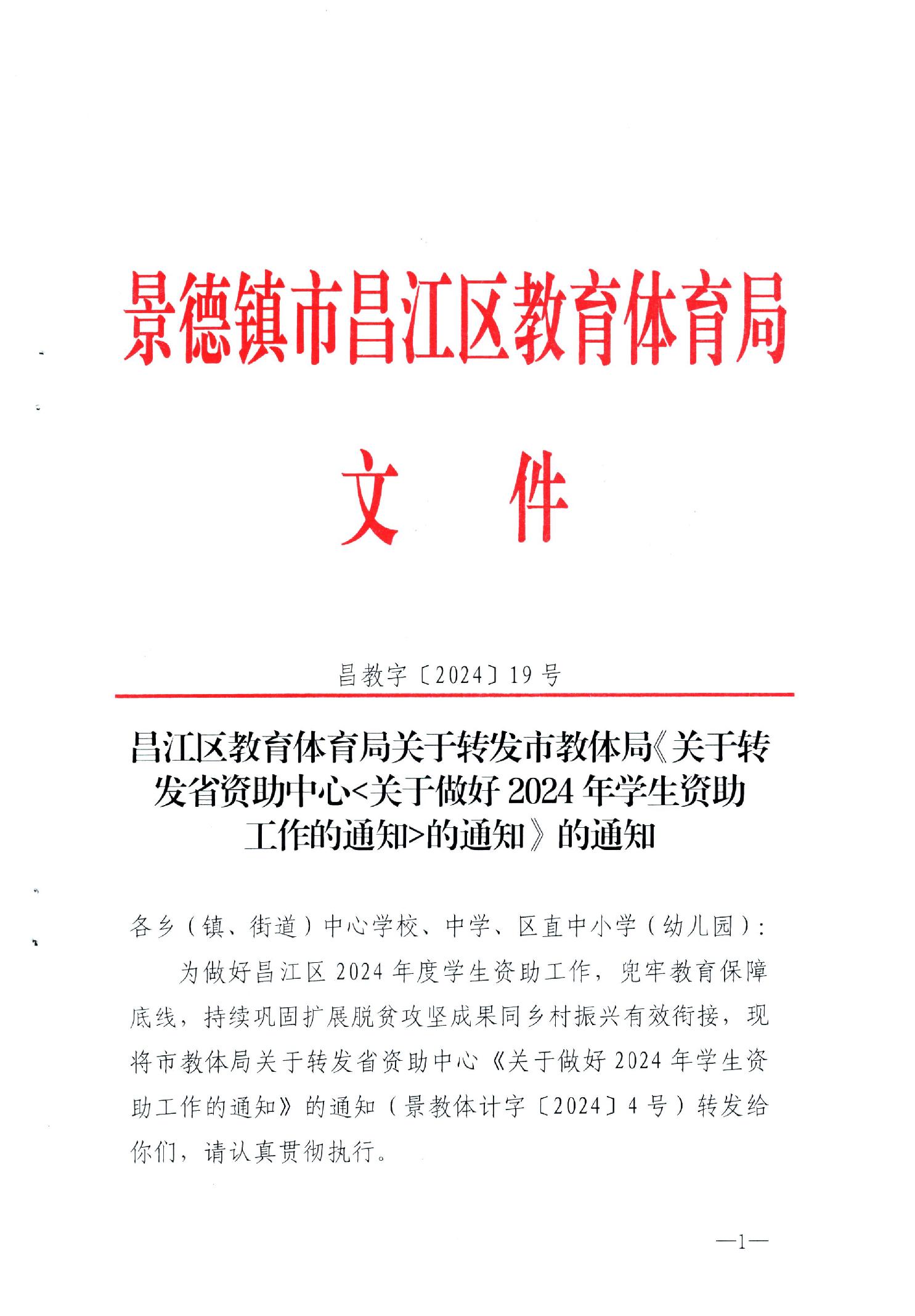 昌江区教体局关于转发市教体局《关于转发省资助中心关于做好2024年学生资助工作的通知》的通知