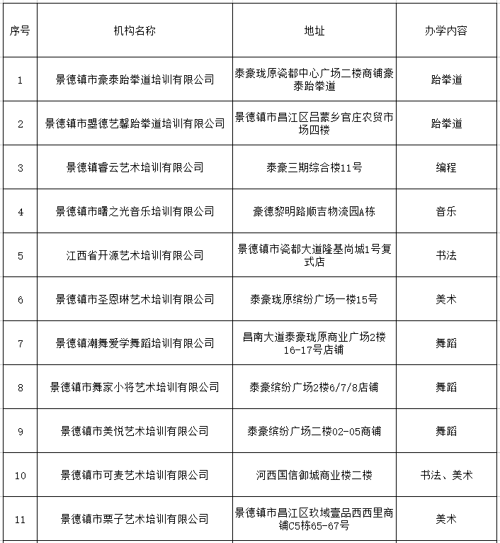 为进一步贯彻落实中央“双减”精神和省市相关要求,不断强化对校外教育培训机构的监督管理,切实维护广大学生和家长的合法权益,现将我区23家证照齐全、运营正常的非学科类校外培训机构予以公示如下: