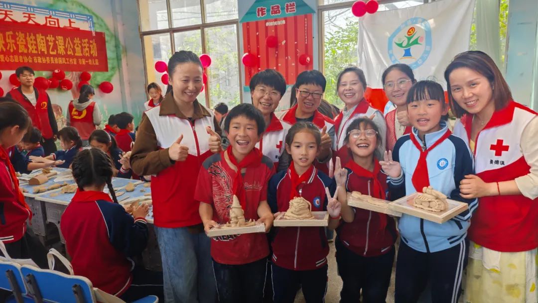 活动进行中,市红十字会党组书记刘娟、市红十字会专职副会长董淑琴等领导详细了解了学校的教学情况和困境儿童生活学习情况。陶艺课不仅是技艺的传授,更是文化的浸润。希望通过这样的活动,让乡村孩子在感受瓷都魅力的同时,从小种下红色信仰的种子,让“快乐瓷娃”成为传承红色基因和千年陶瓷文化的小使者。