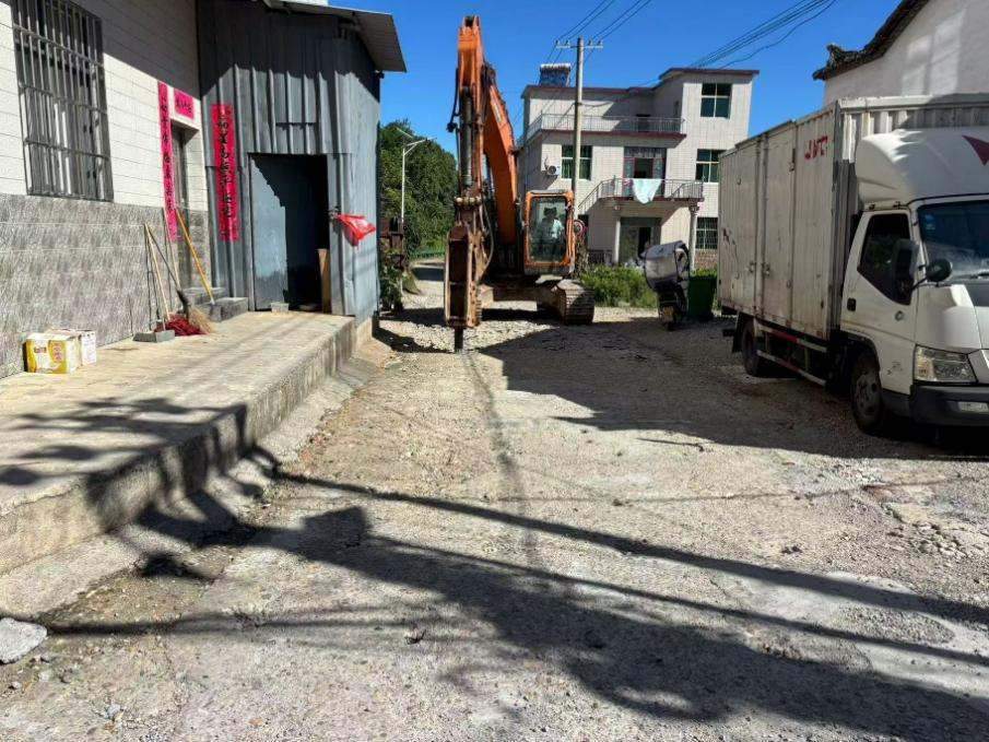 这条路贯穿村内4 个村民小组,曾是村民们多年的“心病”。 “以前这条路虽是水泥路,但年久失修早就不成样子了。”村党支部副书记刘小明回忆,路面到处是裂缝和坑洼,最愁的还是下雨天——雨水积在坑里能没过脚背,孩子们上学得家长深一脚浅一脚地背着,到了旱季,车辆一碾,破损路面的碎石子混着尘土被带起,漫天飞扬,村民们白天都得关着门窗,不然家里分分钟落一层灰。更让大伙揪心的是,地里的蔬菜、水果熟了,收购商看这路坑坑洼洼的,要么不愿意来,要么就把收购价压得很低。就算运出去,颠簸的路也让不少果蔬磕坏了,一年算下来,损失真不少。“这‘破损路’造成的‘出行难’‘运输难’,成了村民们天天念叨的烦心事,也是村委会一直惦记着要解决的‘急难愁盼’。”