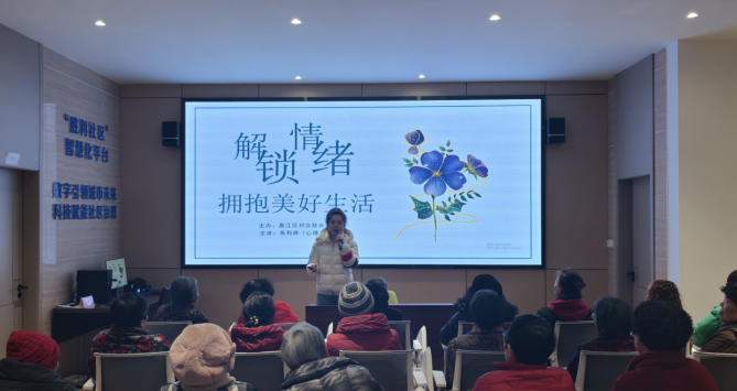 在心理情绪健康讲座环节,由昌江区妇联邀请的心理咨询师吴利婷以“解锁情绪,拥抱美好生活”为主题,向居民们讲解了情绪管理、压力应对、心理健康维护等方面的知识。咨询师通过互动游戏和案例分析,帮助居民们了解如何识别情绪问题、缓解心理压力以及建立积极的心态。