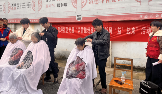 为弘扬无私奉献、为人民服务的雷锋精神,让雷锋精神在社区内生根发芽,温暖更多居民们的心。东风坦社区邀请辖区理发店开展了一场“学雷锋我践行 树新风 ‘益’起来 ”主题活动,为辖区内的居民提供免费的理发服务,以实际行动弘扬雷锋精神,传递社会正能量。