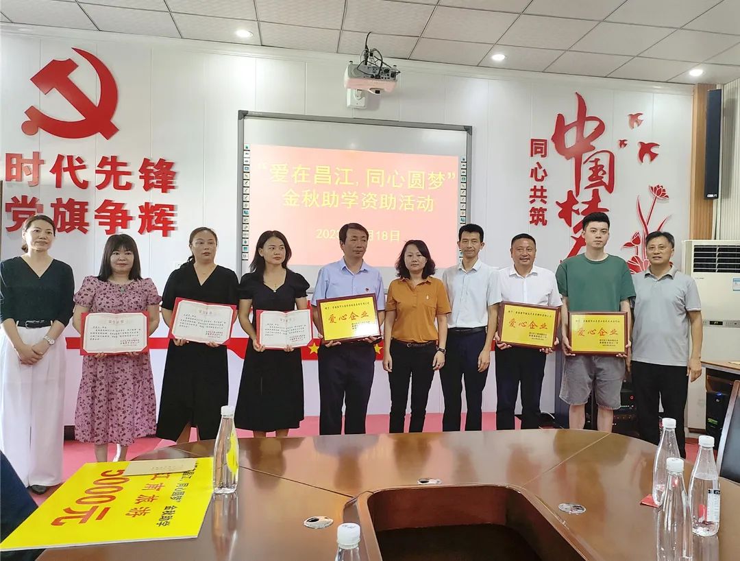 景德镇市江南旅游发展集团有限公司、景德镇市骏达汽车零部件有限公司、景德镇市四季果业农民专业合作社、江西中婺建筑工程有限公司、 景德镇众祥陶瓷股份有限公司、江西省华宏建设有限公司6家企业负责人参加活动,并共同捐赠3.5万元资助7名困难学子。