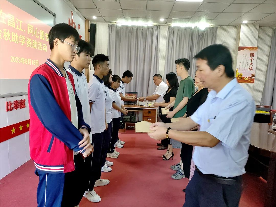 8月18日上午,昌江区工商联在昌江一中、昌江二中开展2023“爱在昌江、同心圆梦”金秋助学活动,区委常委、统战部部长周薇,区政协副主席、工商联主席程厚宏出席活动。