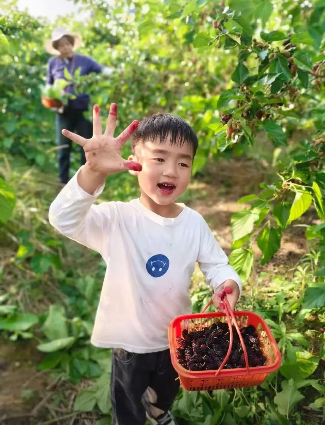 同时,山田村乡村振兴果园中的桑葚园今年也迎来了丰收,小小的桑葚成为村集体增收的“甜蜜果”。五月份,园内的桑葚缀满枝头,吸引了众多市民驱车到此打卡拍照、采摘尝鲜,体验采摘乐趣。果园采取“公司+合作社+农户”模式,收益分配为脱贫户及检测户占49%、村集体占51%,仅2024年就为农户和脱贫户带来了近4万元收入,再加上其他产业分红,每年可为每户脱贫户带来2000余元的产业分红,超过全省平均水平。
